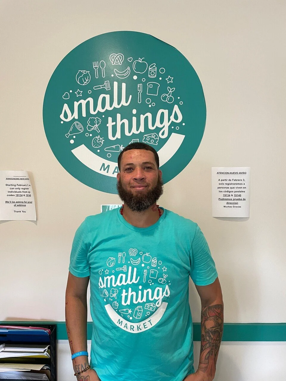 This month, we begin Small Things’ salute to service by highlighting the work of Jose Marquez, who handles the stock (among other tasks) at the Small Things Market in Fairhill! Jose, who has been with us since June 2024, was instrumental in getting the market ready for our annual monitoring visit by Philabundance.