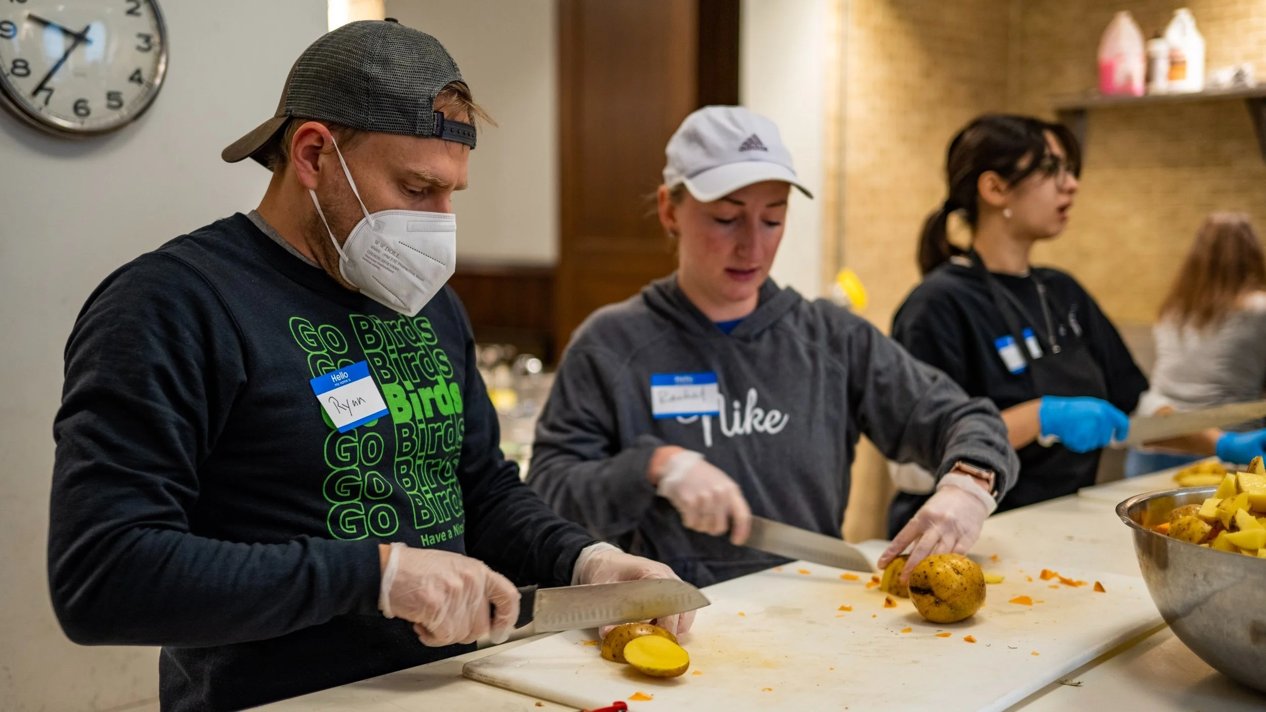 These shifts run from 9-11am & 11am-1pm, and volunteers help prepare the meal, serve and wait tables, and clean up. No previous cooking experience is required!